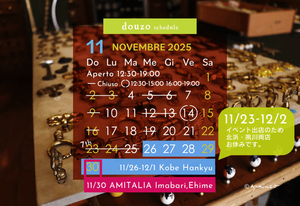 11月はイベント盛りだくさんにつき、準備や出張のため北浜店はお休みが多くなります。