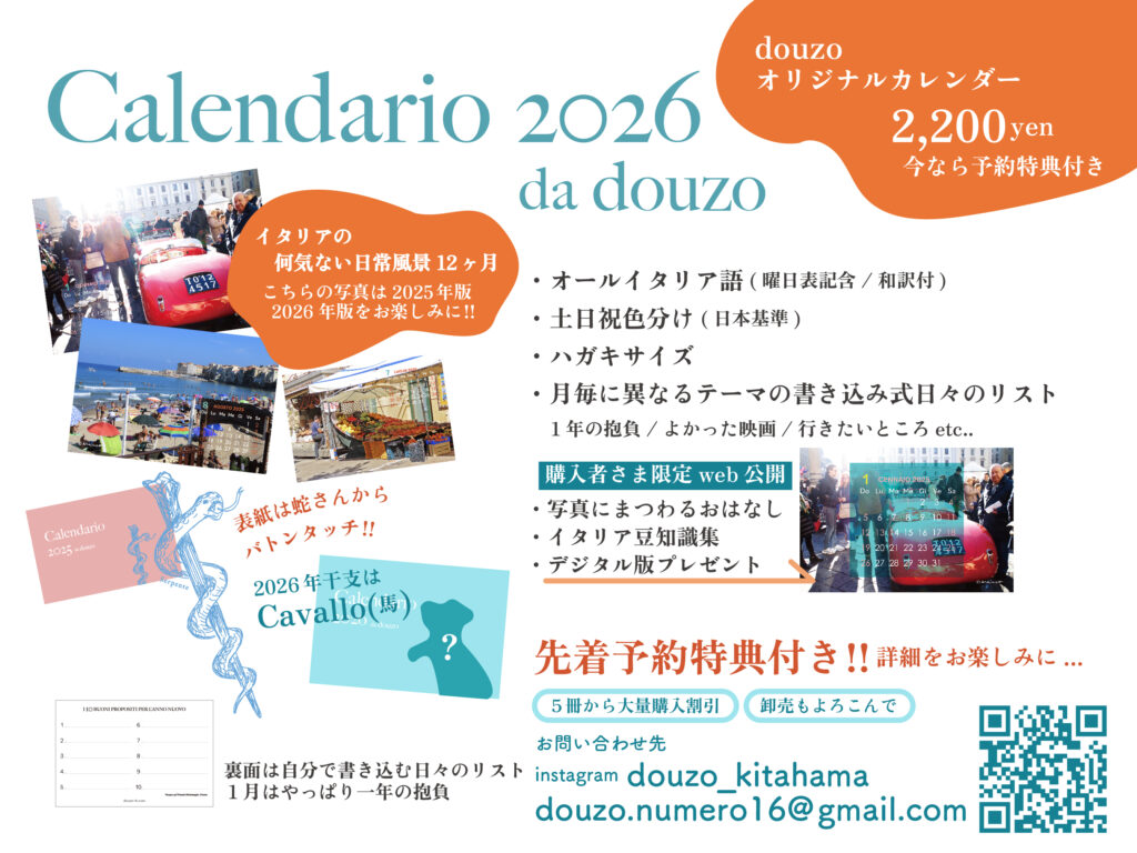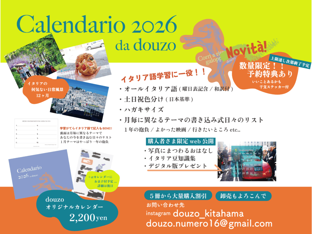 イタリアの何気ない日常をご自宅に届けるdouzoオリジナルカレンダーが2025年版からリニューアル!
